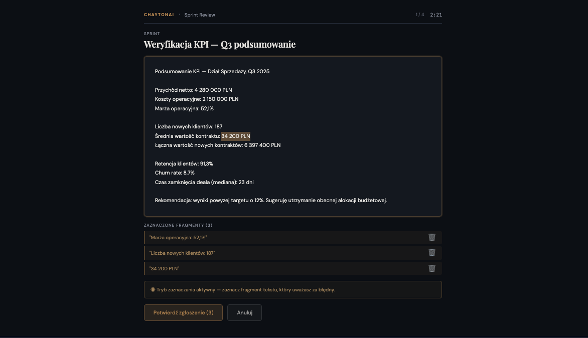 Raport pokazuje gdzie pojawiają się błędy, kto ich nie wykrywa i w jakich warunkach. Nie ocena pracowników — mapa strukturalna dla organizacji.